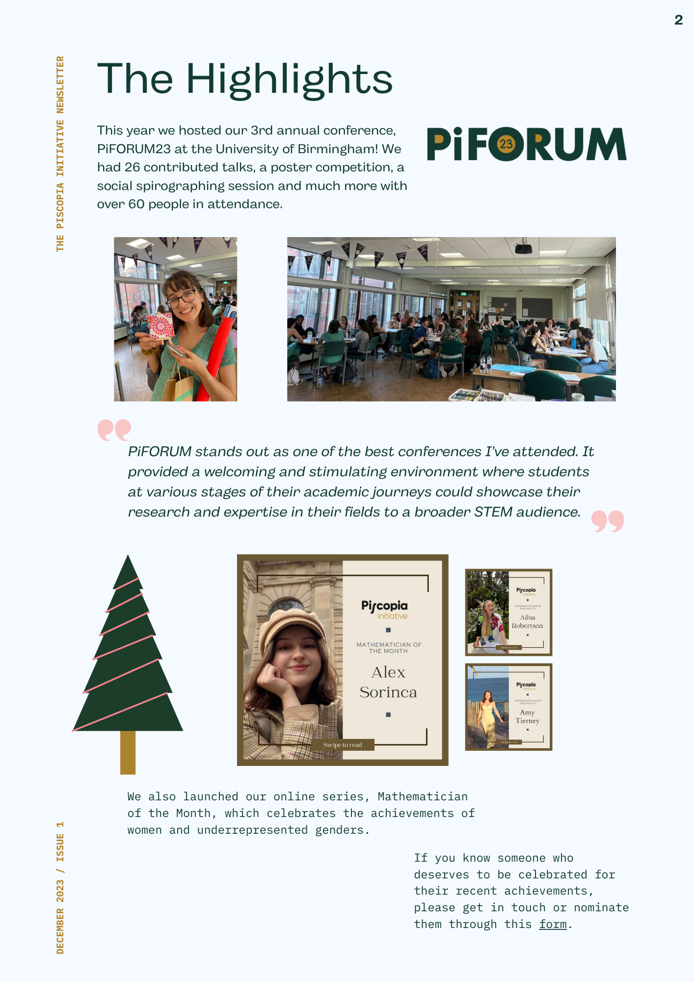 What a year it has been! We take the time to celebrate what Piscopia has achieved this year, and make plans for an even bigger 2024. Read the newsletter below for all the highlights.