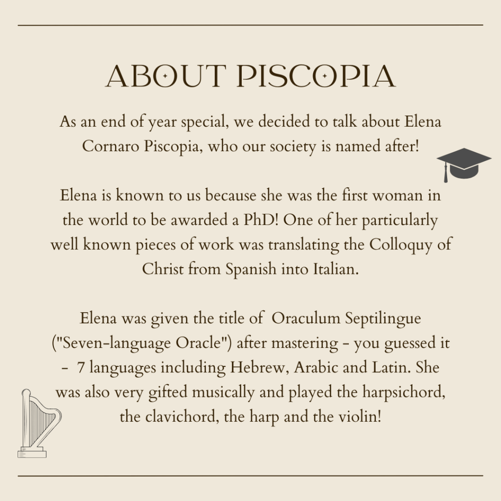 To round off 2023, we celebrate Elena Cornaro Piscopia (who we are named after)!