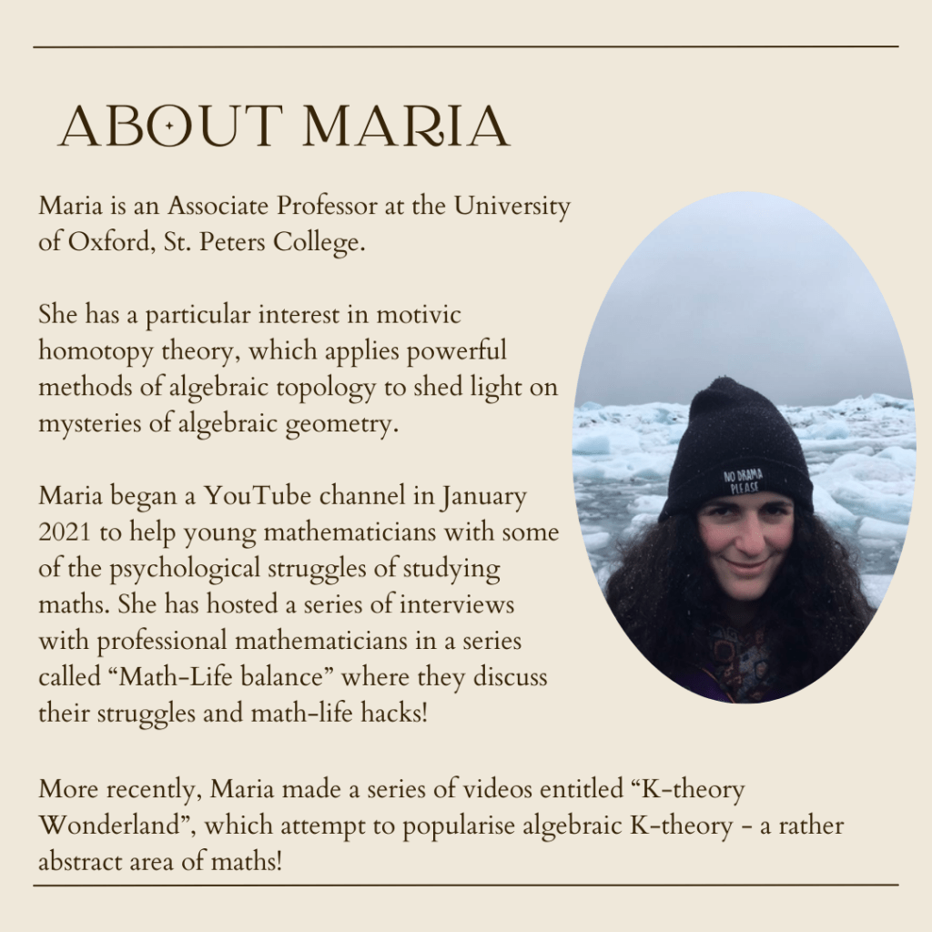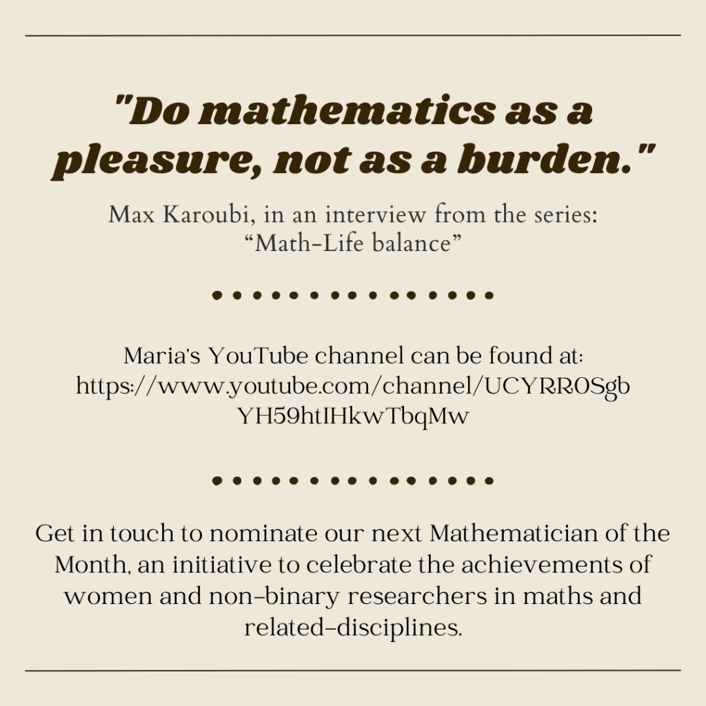 Happy New Year! We kick off 2024 with our first Mathematician of the Month, Maria Yakerson! Read the post below to hear about Maria’s achievements and please share with your colleagues.