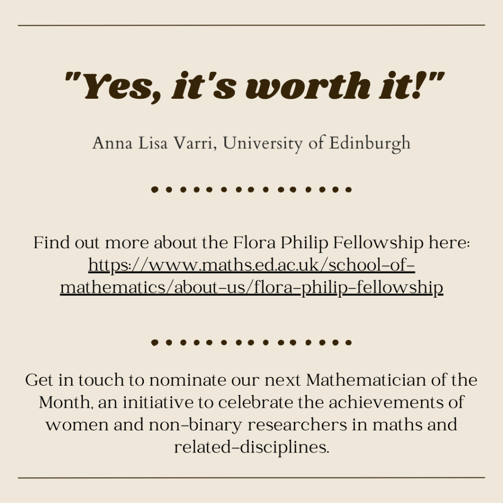 More details about the Flora Phillip Fellowship can be found here: https://www.maths.ed.ac.uk/school-of-mathematics/about-us/flora-philip-fellowship
