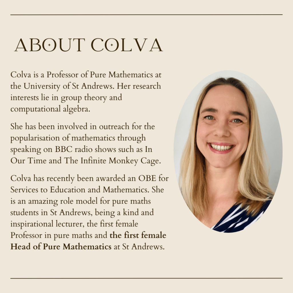 We continue our Mathematician of the Month series, this month celebrating Colva Roney-Dougal! Read the post below to hear about Colva’s achievements. Please share with your friends and colleagues.