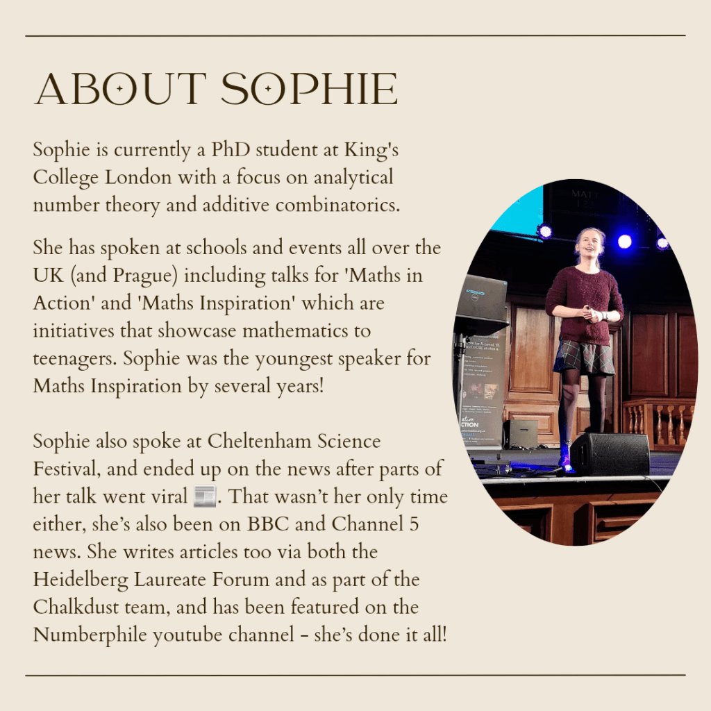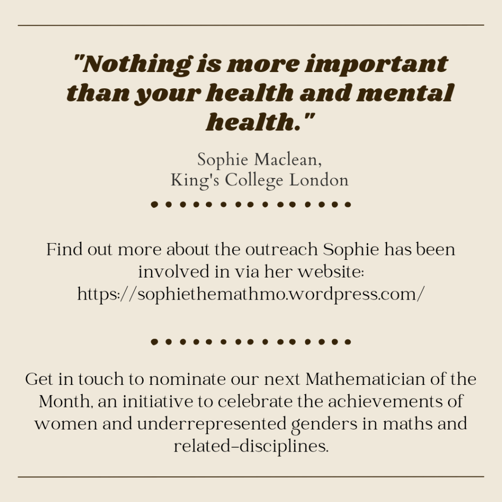 We continue our Mathematician of the Month series, this month celebrating Sophie Maclean! Read the post below to hear about Sophie’s achievements. Please share with your friends and colleagues.