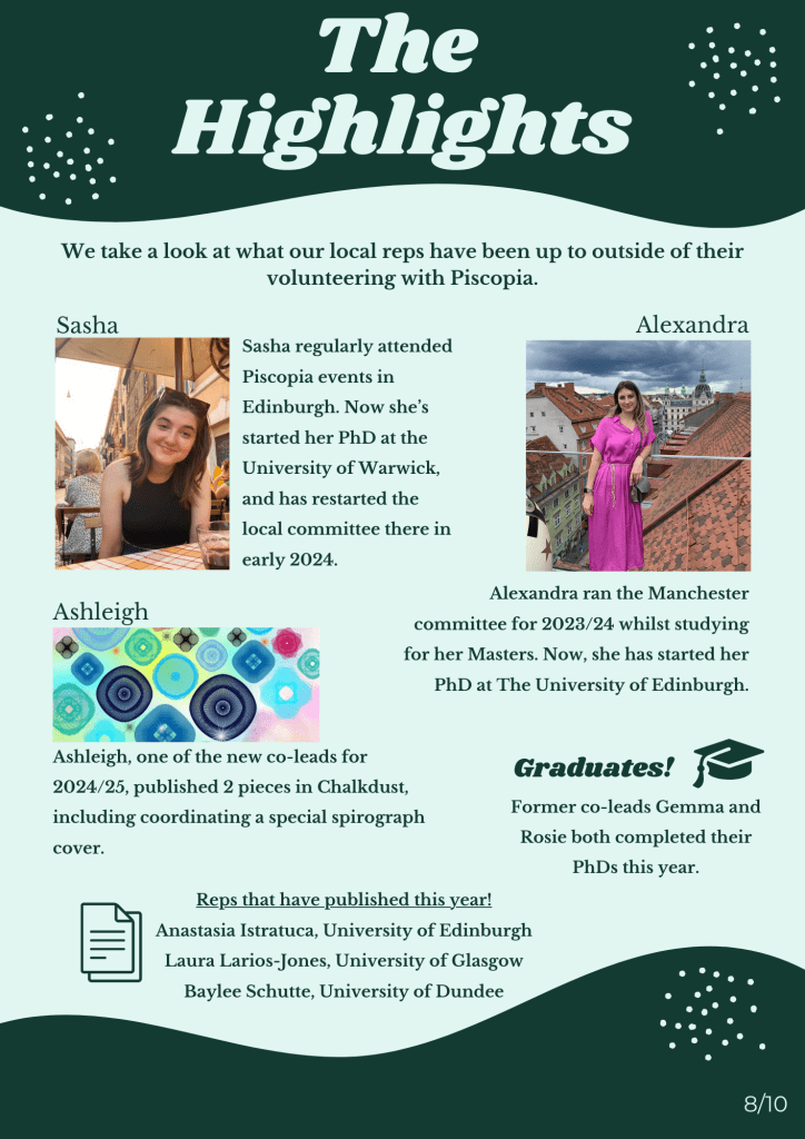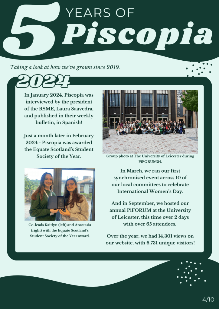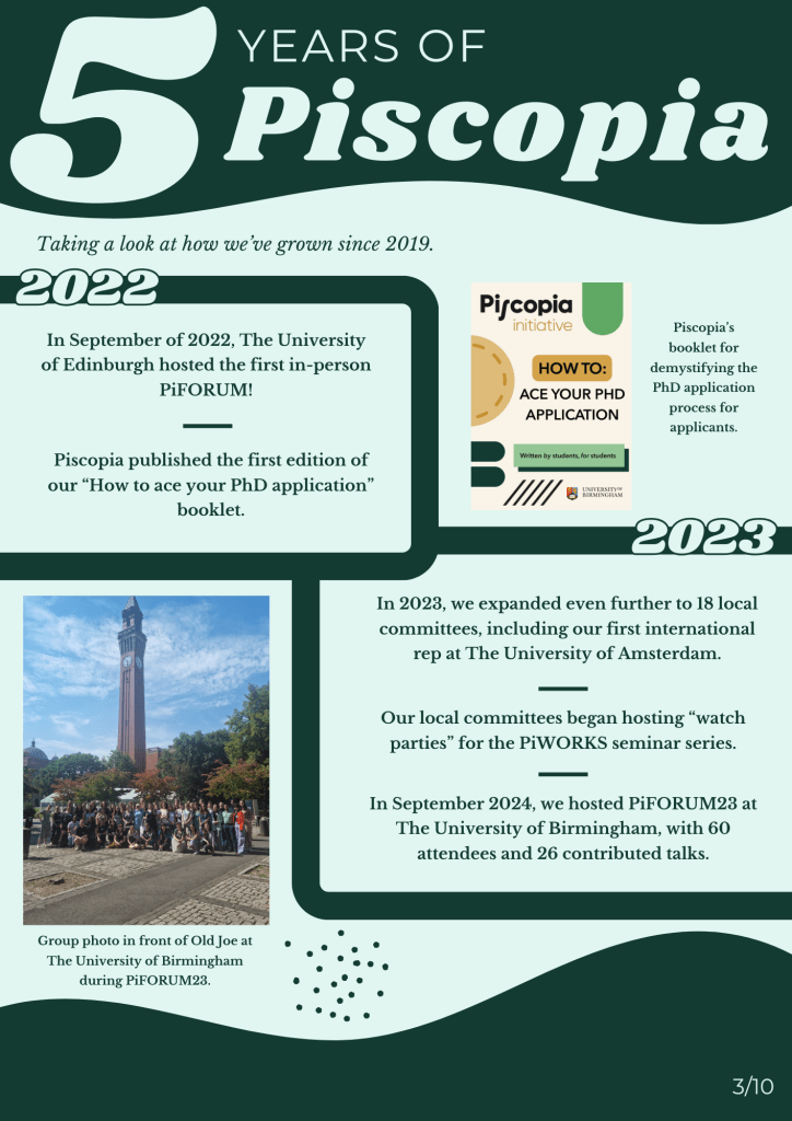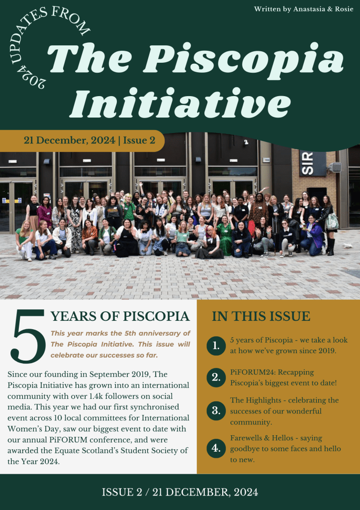 Celebrating 5 years of Piscopia! Read (and share!) our newsletter below to hear about the highlights of the last half decade 🎉🎈