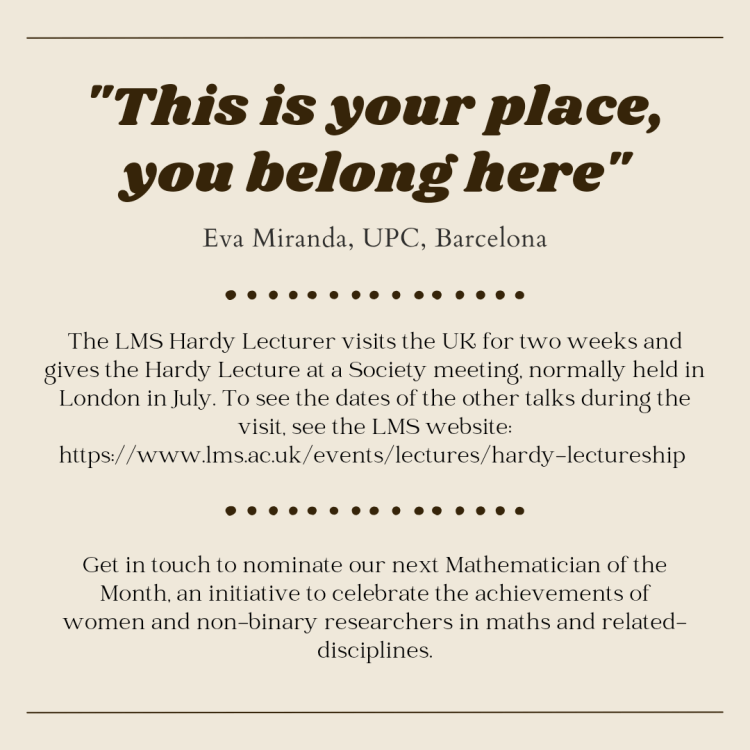 Mathematician of the month is an initiative to celebrate the achievements of women and non-binary researchers at all career stages. If you know someone who you think should be celebrated for their recent achievements or research, get in touch with us to nominate them as our next Mathematician of the Month!