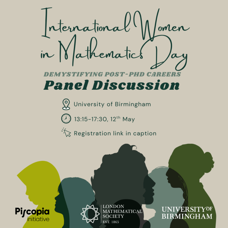 For this year’s International Women in Maths Day, we look forward to welcoming you to the Panel Event “Demystifying Careers after PhD” at the University of Birmingham.