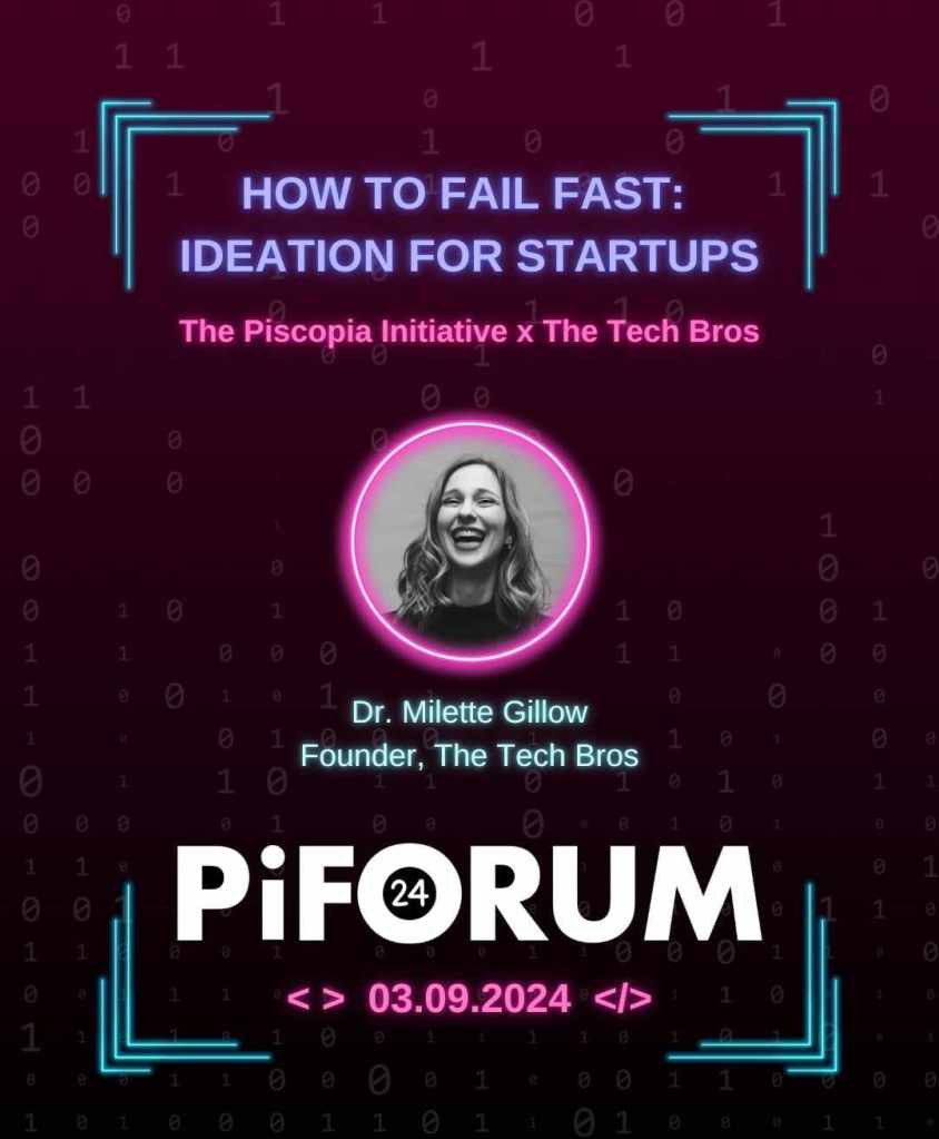 We are excited to be collaborating with Milette Gillow of the tech bros., who will be running a workshop on “How to Fail Fast: Ideation for Startups” at PiFORUM24! the tech bros. is an organisation enabling the next generation of female-founded unicorns to exist. Last month they launched with a hackathon in partnership with ICL and Google, in which 80 women across STEM (many who had never coded) enjoyed a weekend of panels, workshops, and coding. They are launching a full accelerator program in 2025 for women with technical backgrounds.