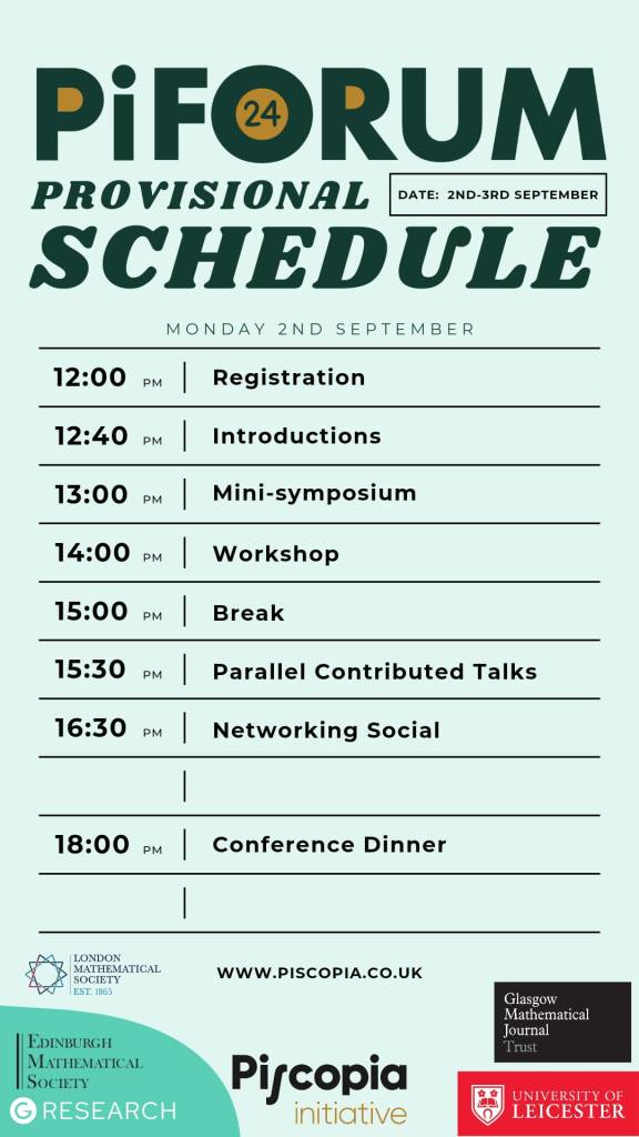 The Piscopia Initiative are planning our fourth PiFORUM event, to be hosted this September at the University of Leicester. After the success of our previous events both online and in person at Edinburgh and Birmingham, we hope that this year we can see even more of our community in person and celebrate the research that is being done around the women and underrepresented genders in mathematics!