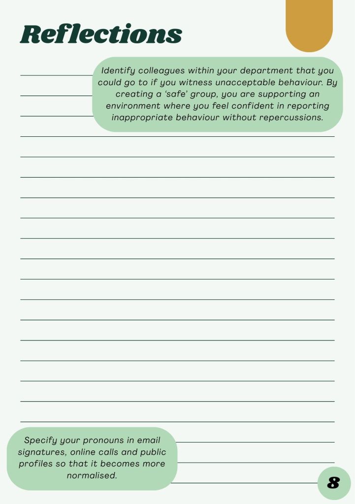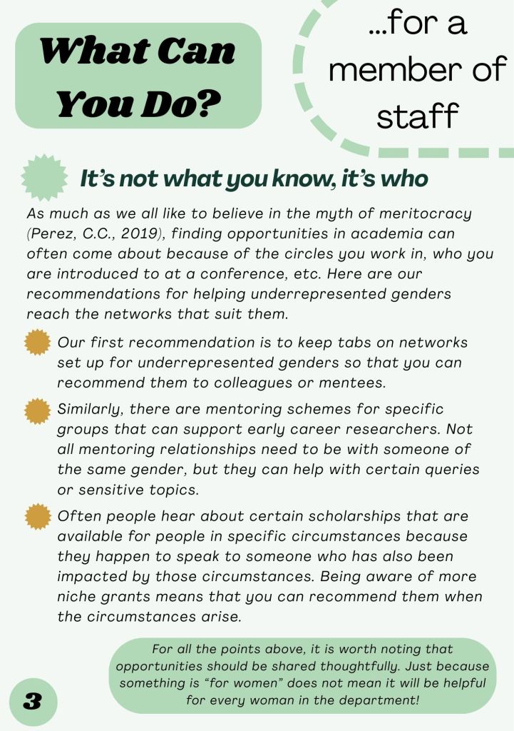 The aim of this booklet is to provide practical guidance for those wishing to do more in their department to support gender diversity. It is not an exhaustive list, and we hope that this is a starting point for most to actively continue their learning about what they can do.